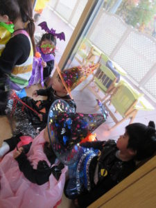 もらったお菓子を嬉しそうにみんなに見せあいながら
